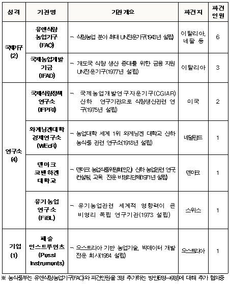 올해 상반기 파견 인턴 33명 중 유엔식량농업기구 본부 파견자 4명, 국제식량정책연구소 2명 등 총 8명이 해당 국제기구·연구소 자체 예산 등으로 계약기간이 연장됐다.