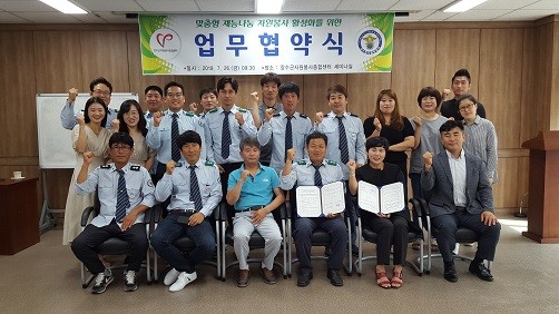 장수군자원봉사종합센터와 장수읍자율방범대는 26일 센터 세미나실에서 이미자 센터장과 장수읍자율방범대 김진철 대장 등 관계자 20여명이 참석한 가운데장수지역 주거복지 맞춤형 재능나눔 자원봉사 활성화을 위한 업무 협약을 체결했다.
