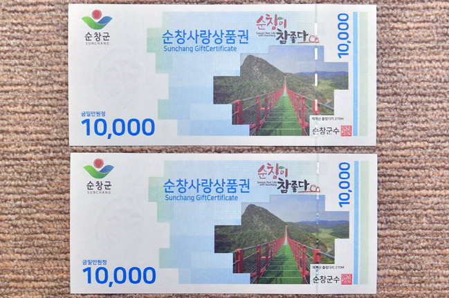 발행일인 8월 1일에는 순창재래시장내 순창농협 본청 앞에서 경품권 추첨 이벤트를 진행한다. 관내 기관장과 사회단체장 등 10명을 초청해 진행될 이번 이벤트는 총 20점의 상품권 일련번호를 추첨해 일련번호와 동일한 상품권을 구매한 소비자에게 상품권 5만원을 경품으로 지급한다.