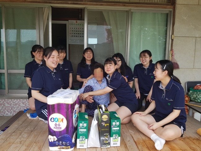 학생 100여 명은 지난 16일부터 17일 이틀간 직접 선정한 23가구를 찾아 이웃들과 즐거운 시간을 보냈다. 학생들은 선반 위, 벽시계, 선풍기 등 집안 곳곳을 살피며 깨끗하게 청소했다. 또 어르신을 위해 직접 부침개를 부치고 반찬을 만들어 함께 나눠먹고 그동안 준비한 노래로 멋진 공연을 펼쳤다.