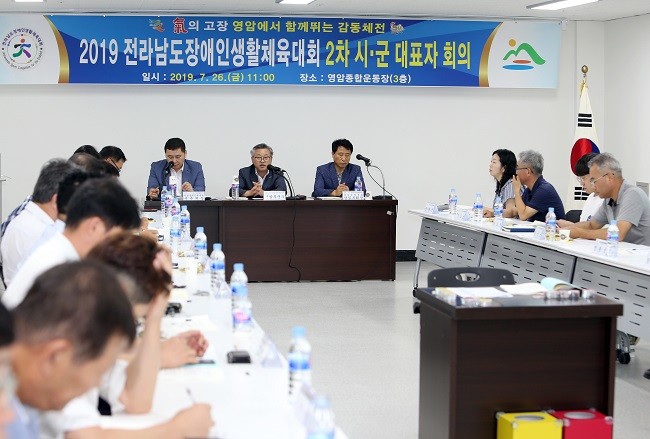 전라남도장애인체육회가 주최하고, 2019 전라남도장애인생활체육대회 추진위원회가 주관하는 2019 전라남도장애인생활체육대회의 서막을 알리는 2차 시·군 대표자 회의가 26일 11시에 영암종합운동장 3층 회의실에서 열렸다.