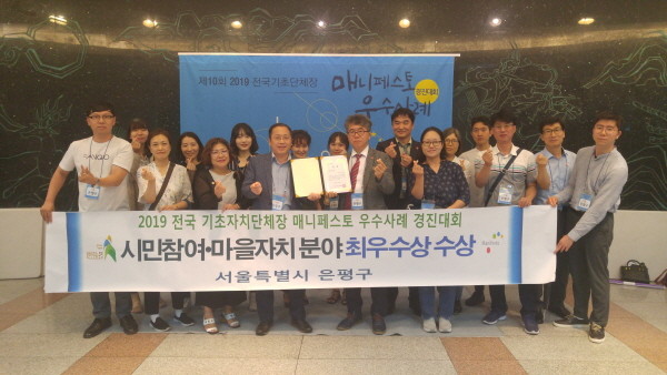 은평구는 지난 25일 한국매니페스토실천본부와 대전세종연구원 공동 주최로 고려대학교 세종캠퍼스에서 열린 2019년도 전국 기초단체장 매니페스토 우수사례 경진대회에서 시민참여·마을자치 분야에서 최우수상을 수상했다.