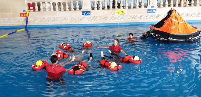 참여 학생은 오전 11시부터 전문 강사로부터 구명조끼 착용법, 구명뗏목 작동법, 생존수영, 심폐소생술 등을 배웠다.