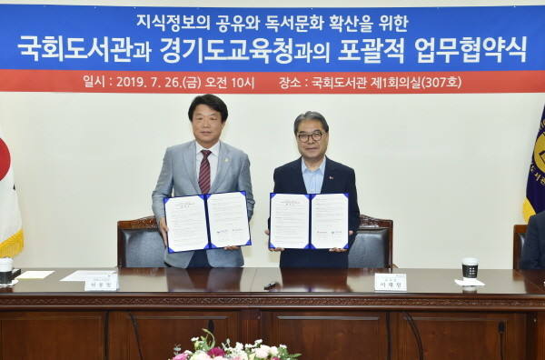 경기도교육청은 26일 국회도서관과 ‘국회전자도서관 지식정보 공유를 위한 업무협약’을 체결했다.