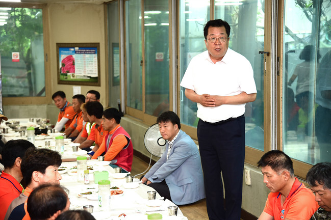 이상천 시장은 시내 모 식당에서 환경미화원과 운전원 등 60여명이 참석한 가운데 이들을 격려했다.