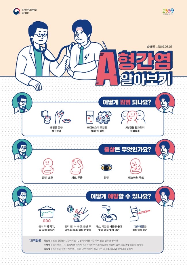 밀접 접촉자는 A형간염 환자의 동거인, 정기적으로 함께 음식을 섭취하거나 화장실을 공동 이용한 사람, 성 접촉자 중 역학조사를 거쳐 선정된다. A형간염은 6~12개월 간격으로 2회 접종하면 면역을 가질 수 있으나, 접촉자의 감염 확산을 막기 위한 초동 대응 조치로 노출 후 2주 이내 1차 무료접종을 실시하니 2차 접종은 민간의료기관에서 맞으면 된다.