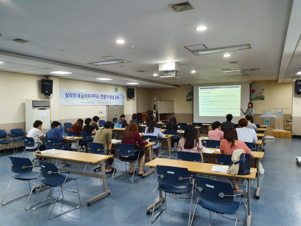 심리적 응급처치(PFA) 전문가 양성 교육 장면