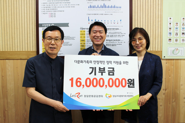 지난 18일 청담문화공감센터는 결혼이민자 운전면허교실과 다문화 가족의 한국어·이중언어 말하기 대회 사업에 1600만원을 기부했다.