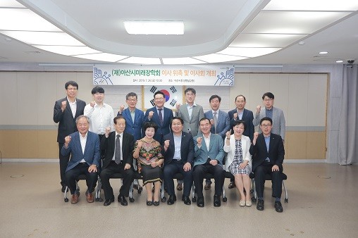 아산시는 지난 26일 시청 상황실에서‘아산시 미래장학회 이사 위촉 및 이사회'를 개최하고 지난 5월 임원 전원이 임기가 만료됨에 따라 새로 선임된 이사 11명, 감사 2명에게 위촉장을 수여했다.