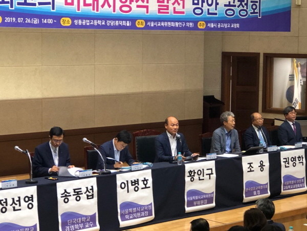 서울시의회 교육위원회 황인구 부위원장이 지난 26일 오후 2시 성동공업고등학교 류덕희홀에서 서울시 상·공업계열 고등학교 교장회의 주관으로 ‘특성화고 미래지향적 발전 방안을 위한 공청회’를 개최했다.