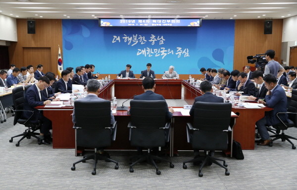 군문화엑스포 준비상황에 이은 8·9월 역점 추진과제 보고에서 각 실·국은 내년 정부예산 확보 중점 대응 제2단계 지역균형발전사업 추진 재난 예방 및 대응 체계 강화 보령 해저터널 재난 대비를 위한 선제적 대책 추진 충남 아기수당 지원 확대 검토 공유경제 활성화 대책 마련 등을 보고했다.