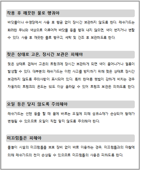 어린이 래쉬가드 세탁·보관 시 주의사항