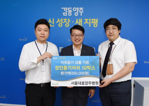 [경기=로컬라이프] 진용두 기자 =양주시는 서울대효양주병원이 지난 26일 양주시청을 방문하여 관내 어려운 노인가구를 돕는데 써달라며 성인용기저귀 10박스을 전달했다고 밝혔다.