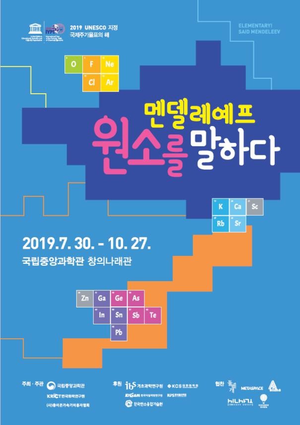 국립중앙과학관은 2019 유네스코 지정 국제주기율표의 해 기념 특별전 ‘멘델레예프 원소를 말하다’를 오는 30일부터 10월 27일까지 개최한다고 밝혔다.