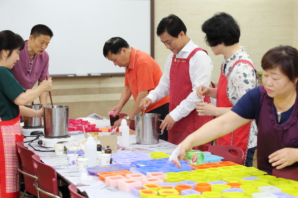 이날 행사에 참여한 이강호 구청장은 통장들과 함께 즐거운 분위기 속에서 천연비누를 직접 만들며 통장들과의 이야기 시간을 보냈다.