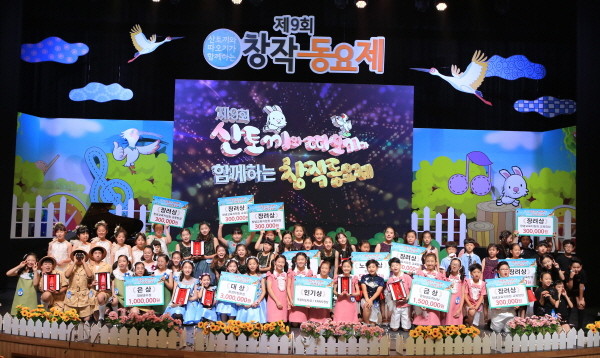 제9회 산토끼와 따오기가 함께하는 창작동요제 후 기념촬영을 하고 있다.