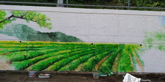 29일 고창군 선운산공원관리팀에 따르면 공원주차장 옆 100여m의 황량한 시멘트 옹벽이 화려한 꽃 그림이 그려진 캔버스로 변신했다.