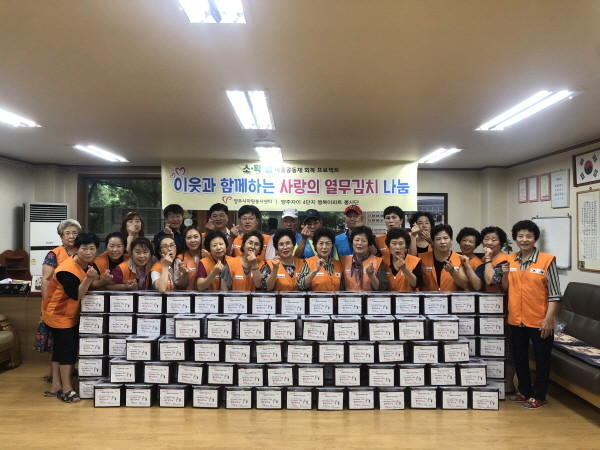 참여자들은 김장김치가 떨어지는 여름철 반찬 부족으로 어려움을 겪는 소외계층을 지원하기 위해 500kg의 열무김치를 담가 소외계층 100가구에 전달하는 등 이웃사랑 실천에 앞장섰다.