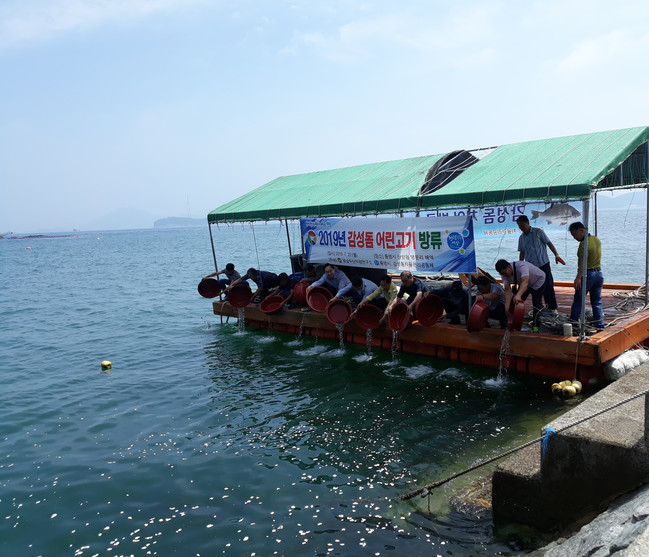 다수어업인 수혜품종인 돔류 어린고기 방류