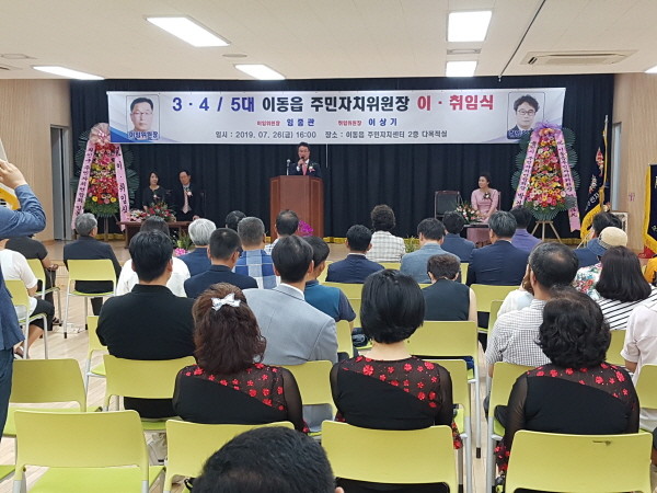 [경기=로컬라이프] 한석훈 기자 = 용인시 처인구 이동읍은 지난 26일 주민자치센터 다목적실에서 관내 기관·단체장과 주민 등 150여명이 참석한 가운데 주민자치위원장 이·취임식을 열었다고 밝혔다.
