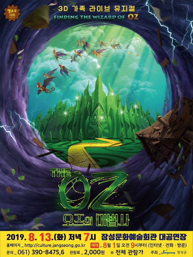 장성군은 오는 8월 13일 저녁 7시 장성문화예술회관 대공연장에서 미국 브로드웨이 연출감독이 만든 3D 가족 라이브 뮤지컬 ‘THE OZ 오즈의 마법사’를 선보인다.