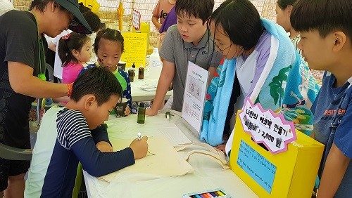 장흥초 6학년 학생들로 구성된 ‘탐진愛 수호대’는 물축제 기간중 지난 27일과 28일 체험부스를 운영했다.