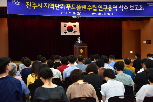 진주시는 29일 오전 11시 진주시청 2층 시민홀에서 진주시장을 비롯해 시의원, 생산자·소비자단체, 농협, 혁신도시 공공기관, 대학생 등 120여 명이 참석한 가운데 ‘진주시 지역단위 푸드플랜 수립 연구용역 착수보고회’를 개최했다.