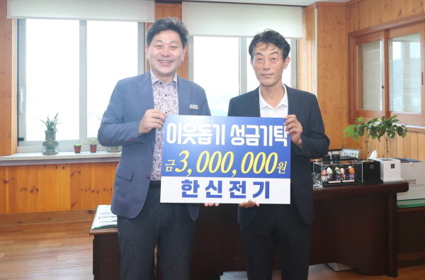 29일, 고성읍 소재 전기공사 업체인 한신전기는 고성군청을 방문해 관내 어려운 이웃을 위해 사용해달라며 성금 300만원을 기탁했다.