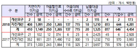 납품대금 분야 위반 기업 646개사 중 644개사는 조사과정에서 피해금액 지급을 통해 자진 개선하였으며, 나머지 2개사 또한개선요구 조치에 따라 모두 개선함으로써 총 44.5억원의 피해금액을해결했다.