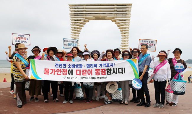 이번 캠페인은 군 관계자 및 태안군소비자보호센터 관계자 등 40명이 모여 피켓과 어깨띠 등을 지참하고 홍보물을 배부하며 건전한 소비생활과 상품가격표시 생활화로 피서철 물가안정에 동참해 줄 것을 호소했다.