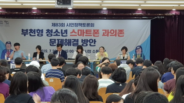 [경기=로컬라이프] 진용두 기자 = 부천시는 지난 26일 시청 소통마당에서 200여 명이 참석한 가운데 부천형 청소년 스마트폰 과의존 문제해결 방안 모색을 위한 시민정책토론회를 개최했다.