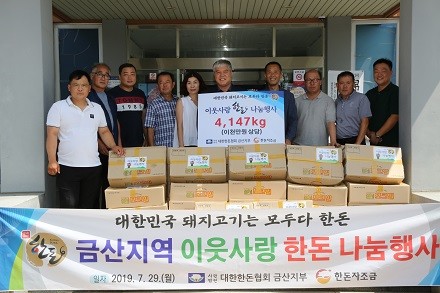 대한한돈협회 금산지부에서 무더위에 지친 소외계층을 위해 지난 29일 금산군청을 방문, 돼지고기 4,147kg을 기탁했다.