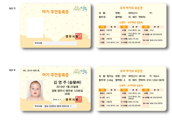 영주시보건소가 출생을 축하하는 아기 주민등록증 발급 서비스를 오는 8월 1일부터 실시한다.