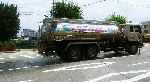 도로노면 살수 작업은 도로표면과 주위 온도를 순간적으로 6 ~ 7℃가량 낮춰 도로 복사열로 인한 열섬효과와 도로변형을 줄여준다.