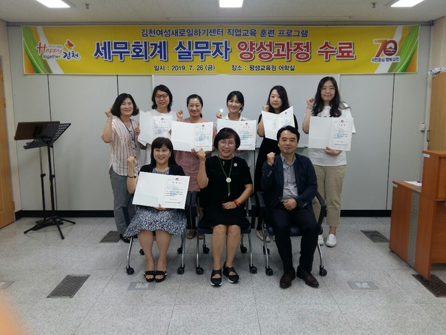 김천시 평생교육원에서 운영하는 여성새로일하기센터에서 지난 26일 오후 2시 직업교육 훈련으로 실시한 “세무회계 실무자 양성과정” 수료식이 열렸다.