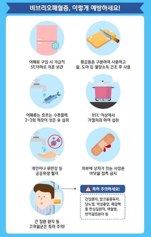 어패류 익혀먹기, 개인위생 철저로 장염과 패혈증 예방 안내문