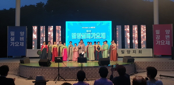 밀양시는 지난 27일 밀양강 둔치 야외공연장에서 제8회 밀양실버가요제를 개최했다.