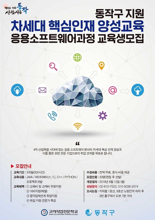 이번 사업은 동작구 직업교육특구 지정에 따라, 4차 산업혁명 시대에 맞는 전문성과 다양한 기술을 갖춘 핵심인재를 양성하고자 추진됐다.