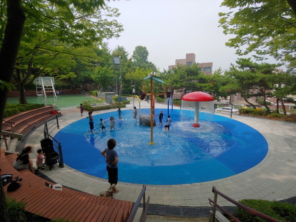구는 이에 따라 올해 여름철 수경시설 운행을 위해 2019년 4월부터 기존의 바닥분수를 소규모 물놀이시설로 변경하는 정비공사 시행했고, 지난 15일 기존의 바닥분수는 사라지고 워터터널 3개, 우산 1개, 팜트리버블버켓 1개가 추가로 설치되어 어린이를 위한 물놀이장을 완료했다.
