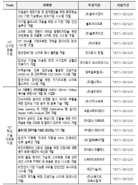 ICT 혁신기업 기술개발 지원사업 선정과제 현황