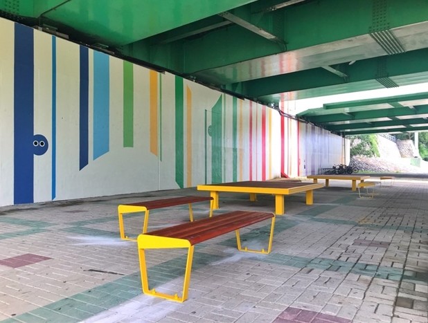 수성교 하부에 시민들이 편안하게 쉴 수 있는 디자인 쉼터공간을 조성했다