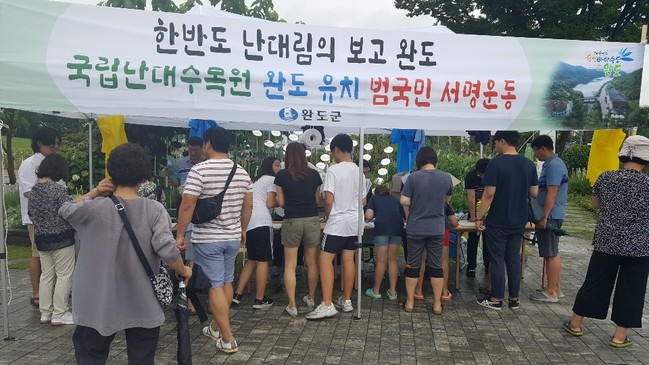 순천만국가정원에서 실시한 이번 서명운동에서 완도군은 장마와 폭염으로 인한 궂은 날씨에도 불구하고 3일간 5,000여 명의 관람객 등이 서명에 동참했다.