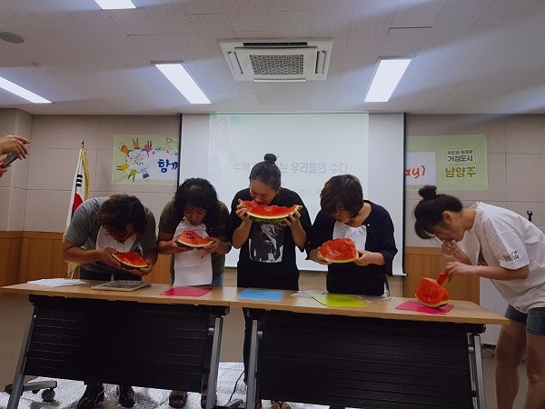 7월 ‘만나서 반갑day’에서 참석자들은 ‘공동체 활동공유, 위로와 지지의 시간’이라는 주제로 공동체 활동을 하면서 느낀 점, 공동체가 나아갈 방향에 대해 생각을 공유하는 한편, 무더위 속 시원한 수박을 이용한 각종 게임을 통해 모두가 하나 되는 소중한 시간을 가졌다.