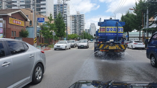 30일부터 9월까지 기간 중 폭염 특보 및 그에 준하는 기온 발생 시 두 대의 살수차를 운행해 오전 9시부터 오후 5시까지 기상 상황, 도로사정에 따라 탄력적으로 살수작업을 시행할 예정이다.