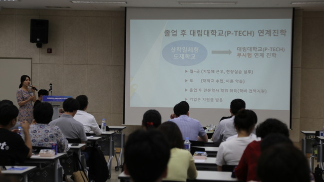 평촌공업고등학교는 기업의 미래를 대비하고 핵심이 되는 젊은 인재를 미리 선점할 수 있는 ‘산학일체형 일·학습병행제’에 대해 소개했다.