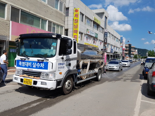 태풍과 장마 이후 폭염이 본격적으로 시작됨에 따라 영양군은 군민들의 체감온도 저감 및 폭염피해예방을 위하여 시가지 도로 살수를 위한 차량을 가동하기 시작했다.