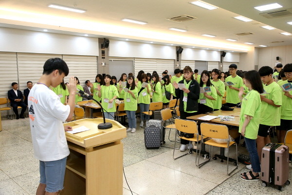 허성곤 시장과 최금식 재단 이사장, 조경철 김해교육장은 행사 첫날 출발에 앞서 김해시청에 모인 학생들을 따뜻하게 격려했다.