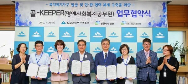 구는 의료적 돌봄이 필요한 대상자들을 케어하는 두 기관과의 협력을 통해 질병으로 경제적·심리적 어려움을 겪는 위기 가정을 발굴하는 인적 네트워크를 구축하고 지역 사회의 안전망을 강화하기 위해 의료기관의 종사자들을 명예사회복지공무원 골-키퍼로 임명, ‘골목골목까지 행복한 미추홀구’를 구현한다는 방침이다.