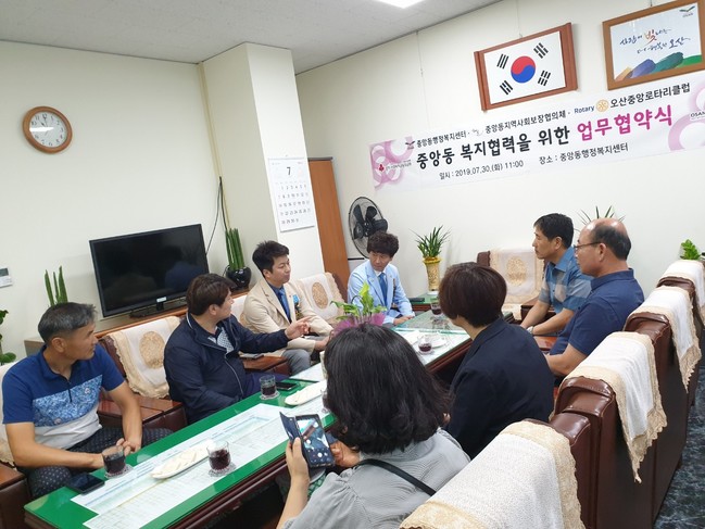 이로서 2019년 하반기부터 중앙동행정복지센터와 중앙동 지역사회보장협의체, 오산중앙로타리클럽에서는 소외계층 발굴 및 해소를 위해 상호 협력할 수 있는 발판을 마련했고, 앞으로 복지 사각지대 없는 지역을 위해 함께 노력할 것을 약속했다.