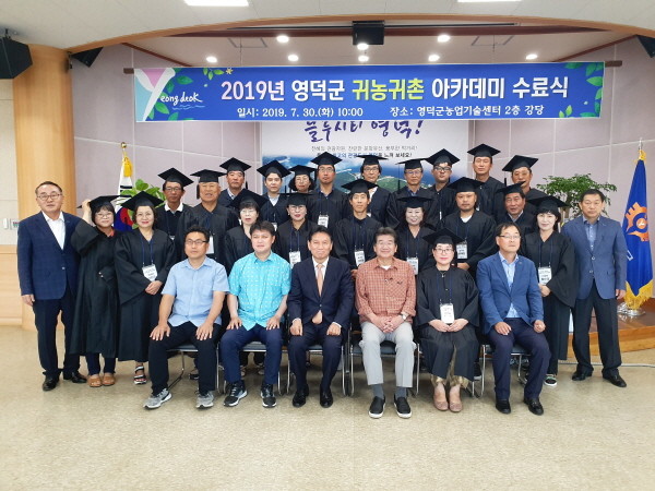 영덕군 귀농귀촌 아카데미는 대구대학교 산학협력단과 함께 운영했다. 4월부터 7월 말까지 4개월에 걸쳐 이론교육 60시간과 현장교육 44시간 등 총 100여시간의 교육과정이 진행됐다. 수료생은 총 24명이다.